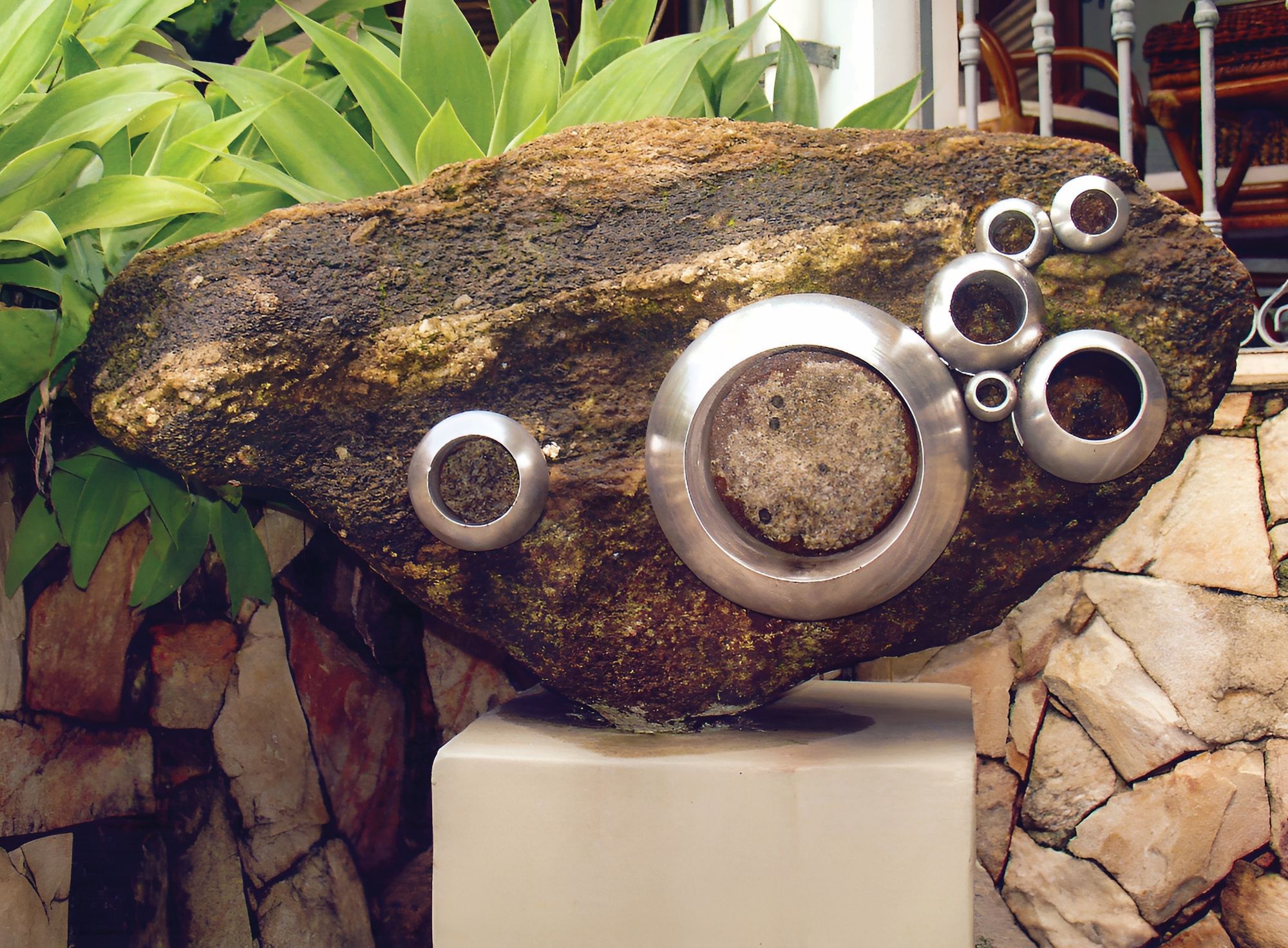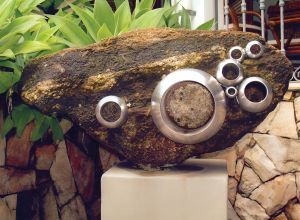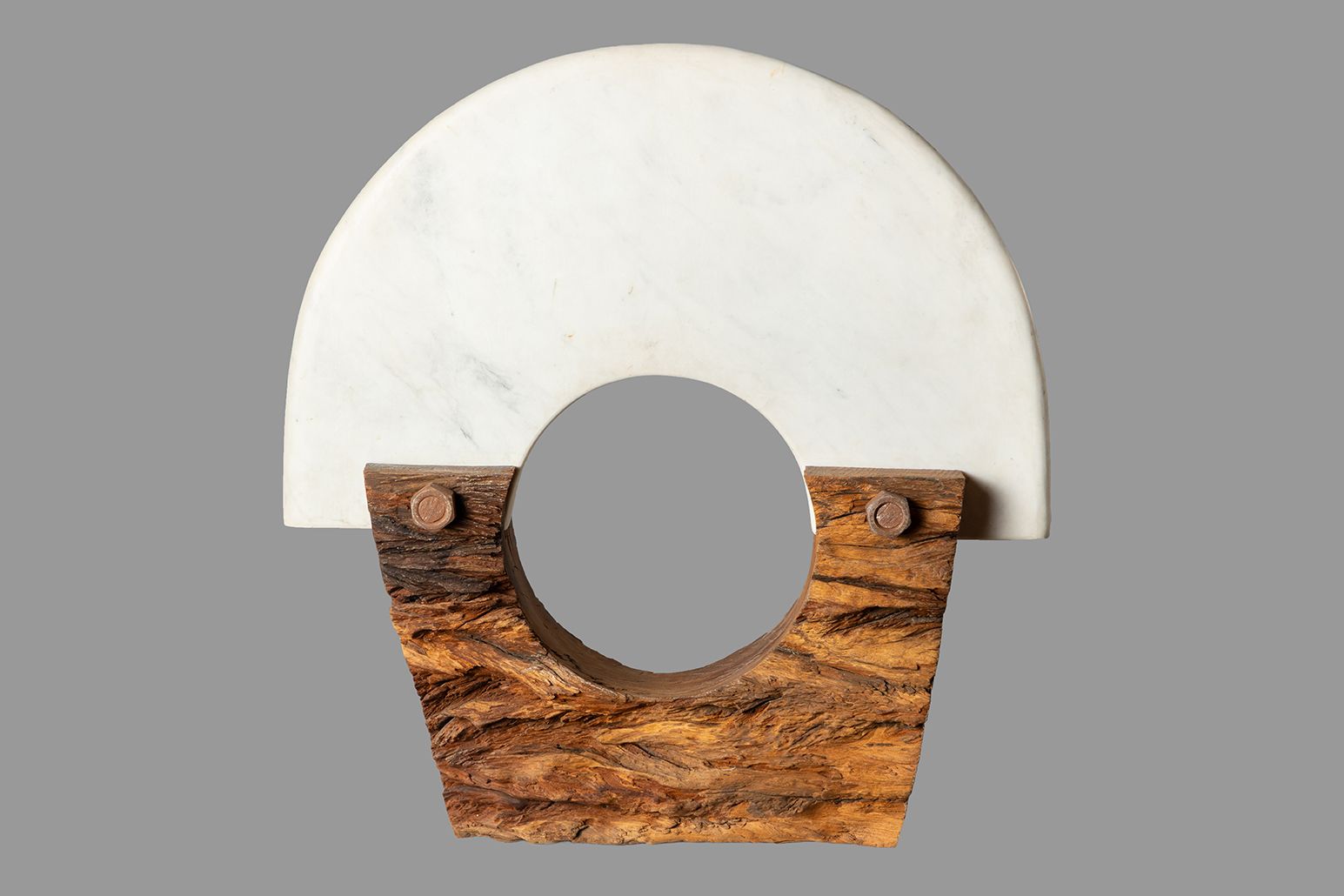 Entre as obras apresentadas nesta exposição, estão a experimental Constelação (1974), em que a artista utiliza uma pedra de considerável proporção para crivar círculos em aço inoxidável. Ou ainda Abstrata 13, feita em mármore e madeira envelhecida, “em que convivem o rígido e o flexível, o geométrico e o orgânico, o permanente e o precário”, como afirma o curador.